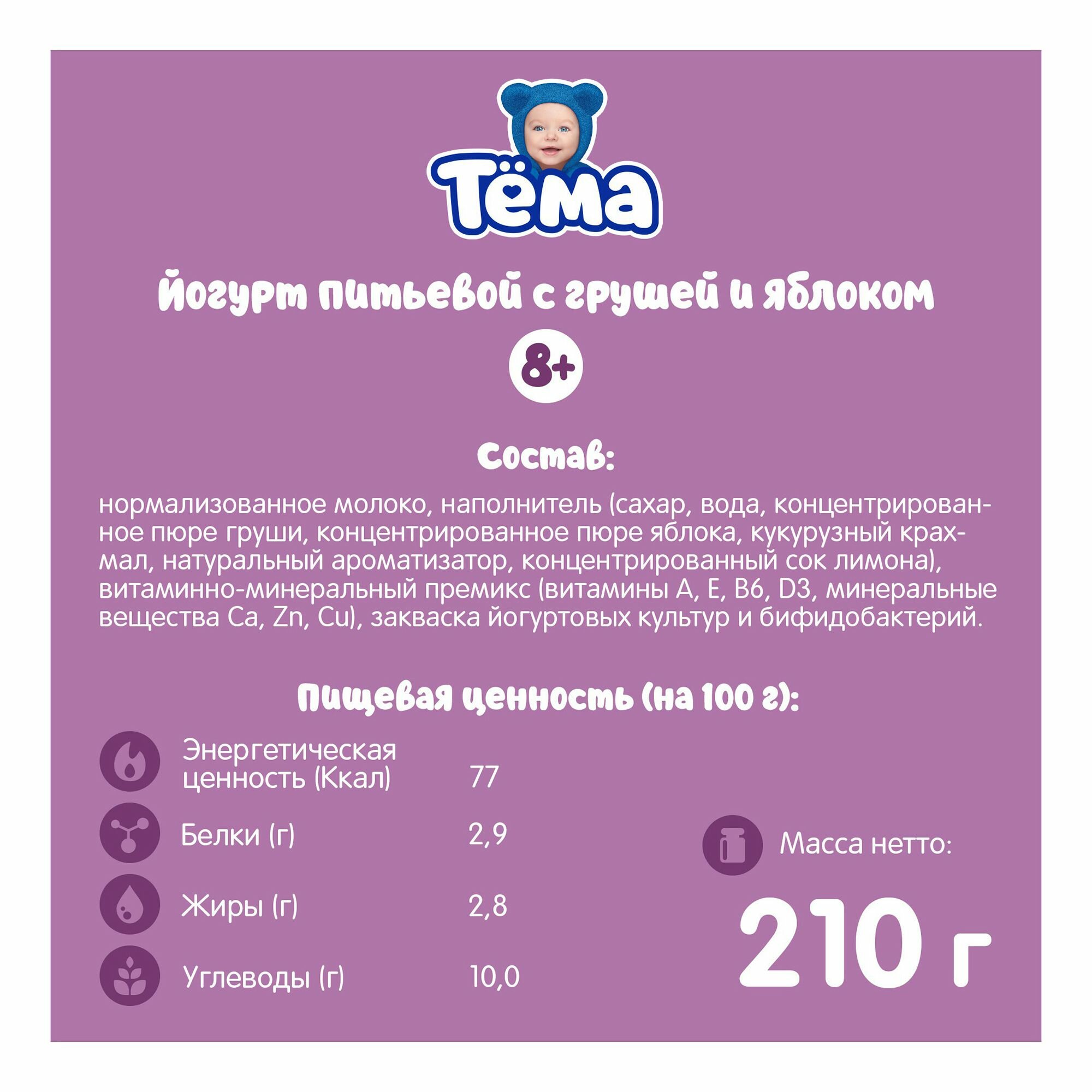 Йогурт питьевой детский Тема груша-яблоко с 8 месяцев 2,8% бзмж 210 мл интересное: