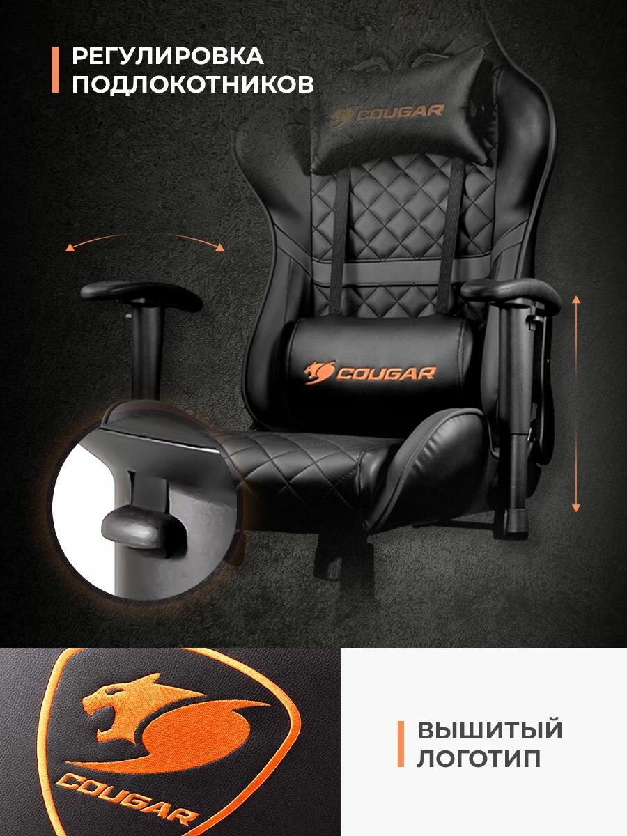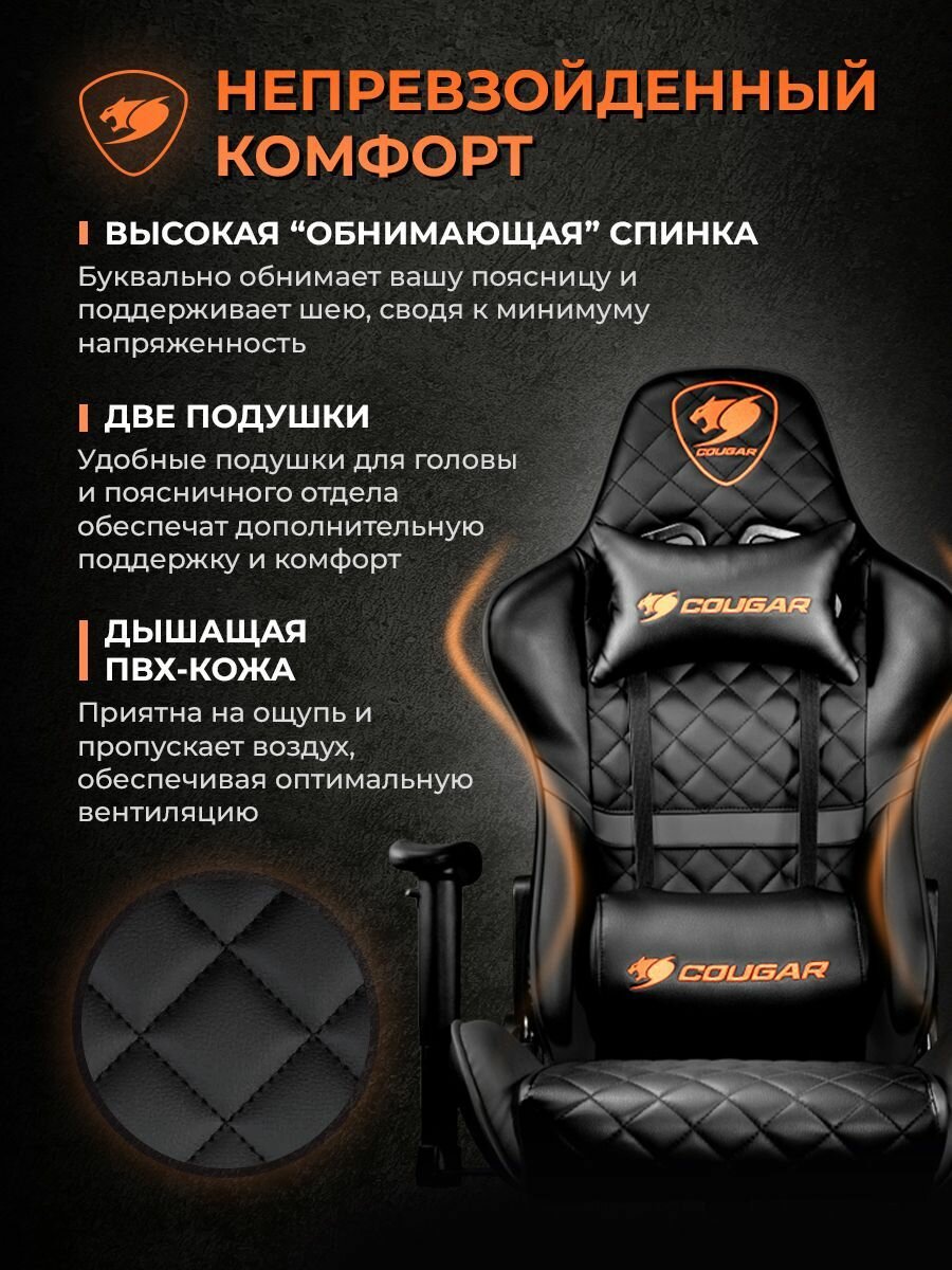 Компьютерное кресло COUGAR Armor игровое, обивка: искусственная кожа, цвет: черный/оранжевый