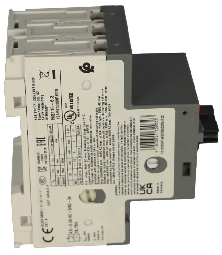 Автоматический выключатель защиты двигателя ABB MS116-6.3 (1SAM250000R1009) 3P 6,3А 50 кА 690 В на DIN-рейку/монтажную плату