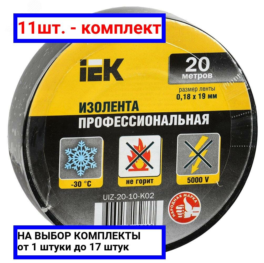 Купить 11шт. - Изолента ПВХ черная 19мм 20м / IEK; арт. UIZ-20-10-K02; оригинал / - комплект 11шт