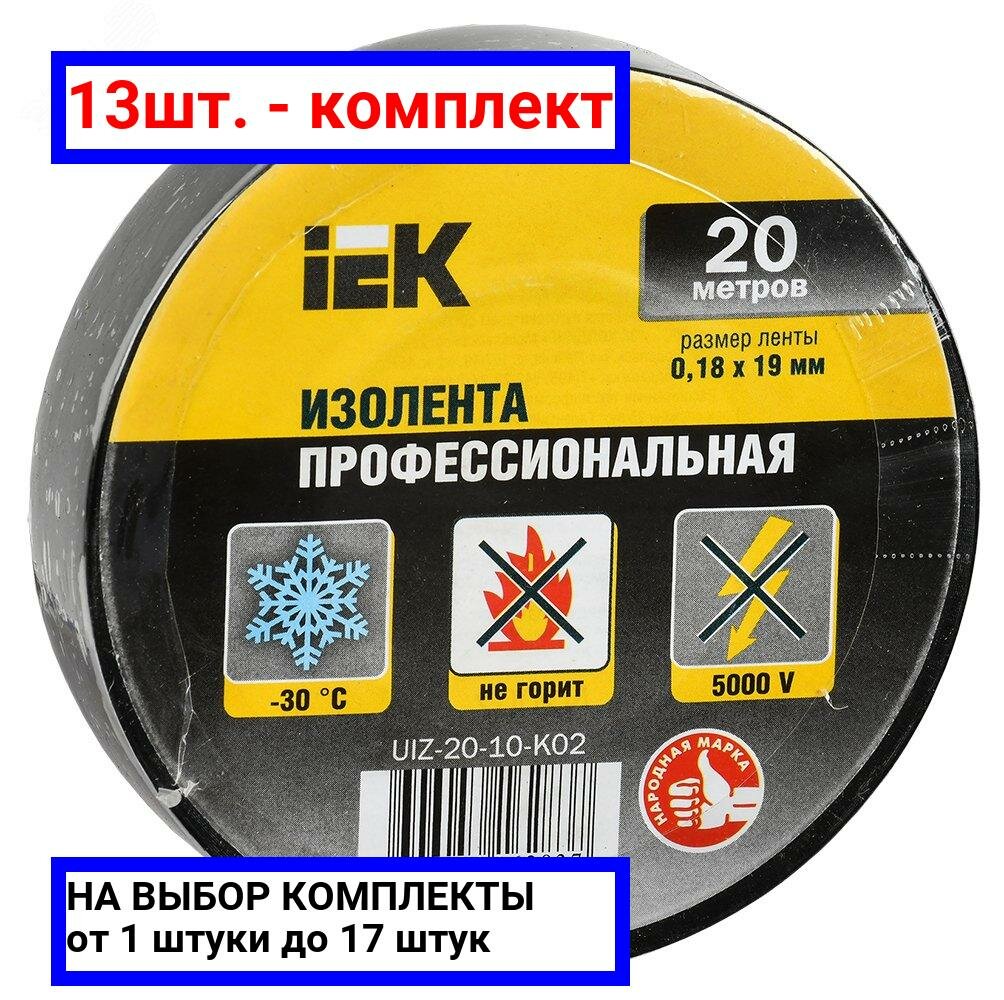Купить 13шт. - Изолента ПВХ черная 19мм 20м / IEK; арт. UIZ-20-10-K02; оригинал / - комплект 13шт