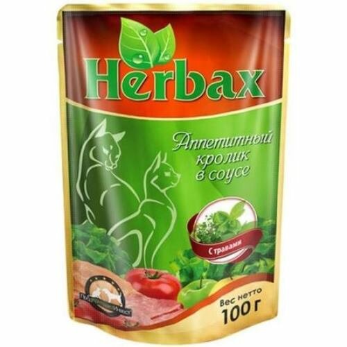 Влажный корм для кошек Herbaх, 100г кролик аппетитный в соусе с травами, 5 шт.