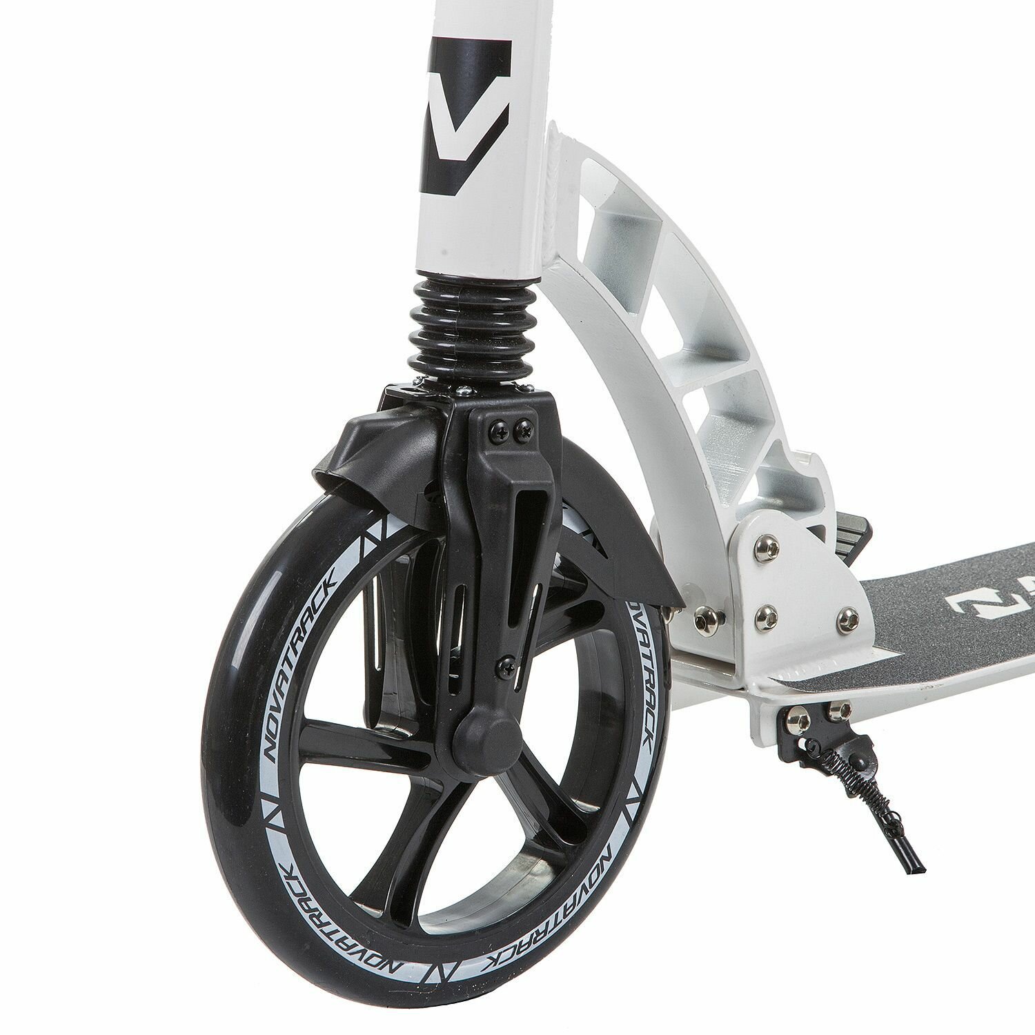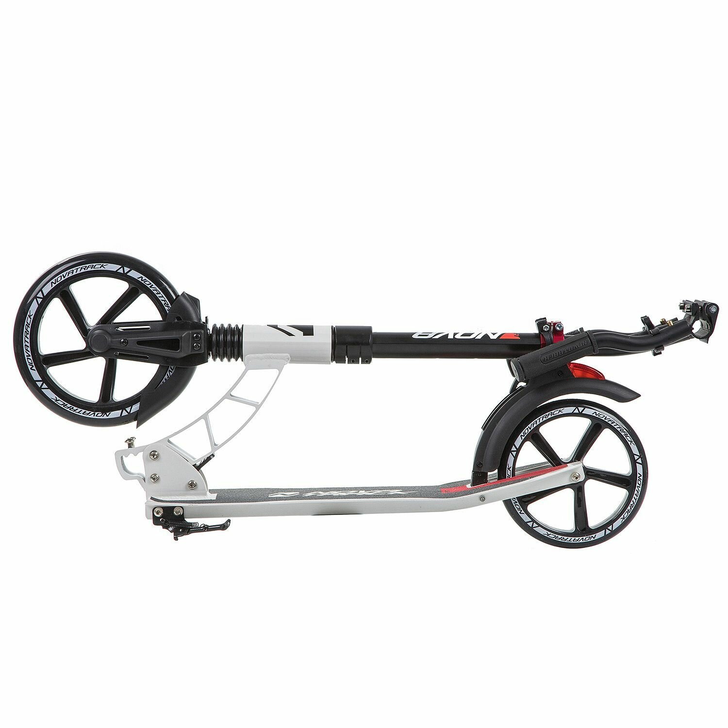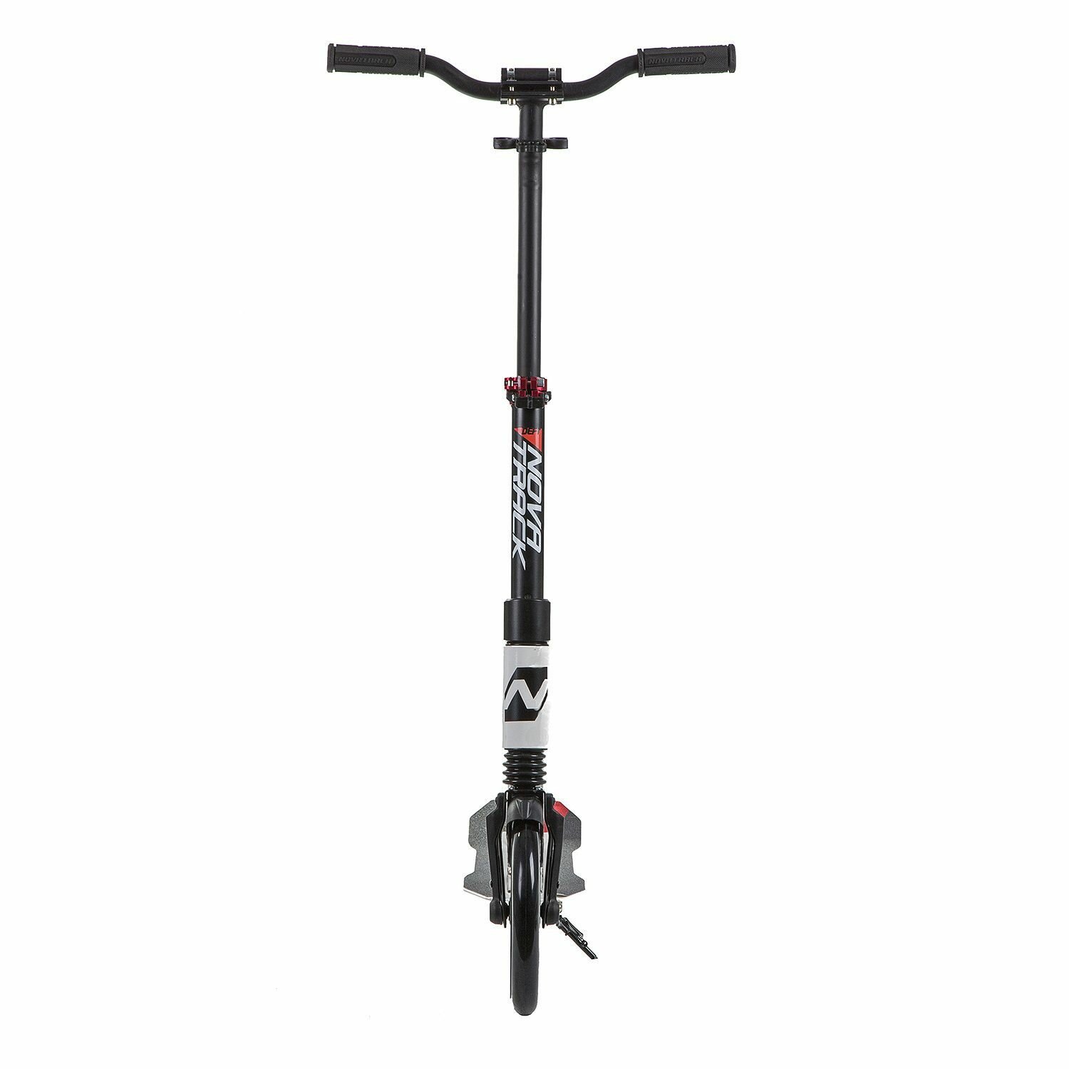 Самокат NOVATRACK DEFT алюм., амортизатор, колеса 230*200 мм PU, эргономичный Y-руль с фиксатором складных рукоятей, черно-белый