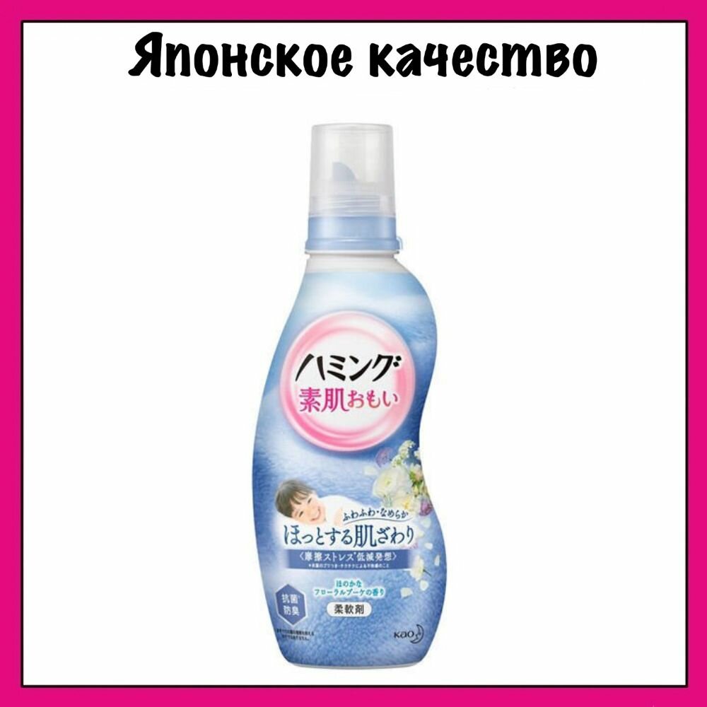 Кондиционер-ополаскиватель KAO Humming для детского и взрослого белья цветочный аромат, бутылка 600 мл