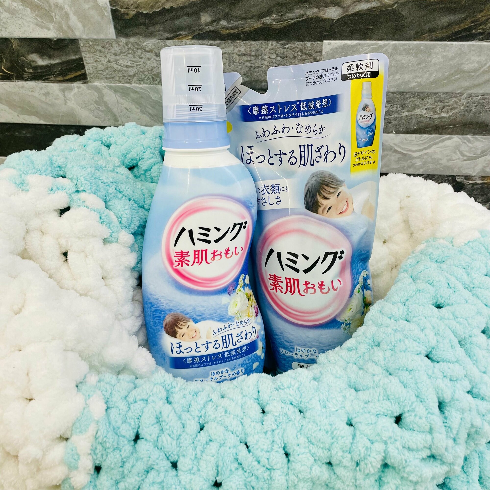 Кондиционер-ополаскиватель KAO Humming для детского и взрослого белья цветочный аромат антистатик, сменная упаковка 540 мл