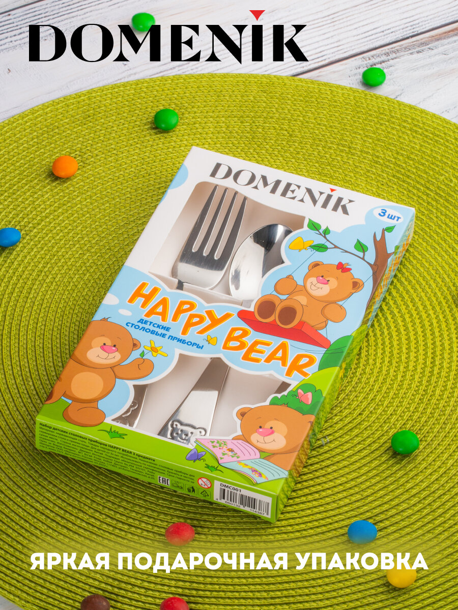 Набор столовых приборов domenik happy bear 3 предмета детский нерж.сталь интересное:
