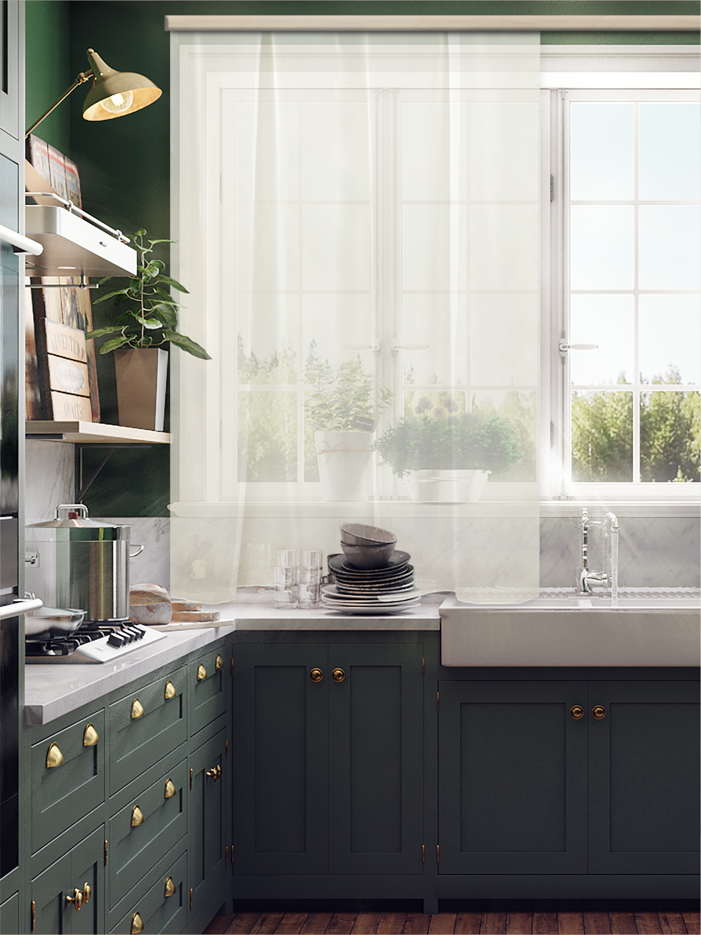 Штора-тюль для кухни Witerra 140х180 см, цвет молочный, вуаль, п/э100%