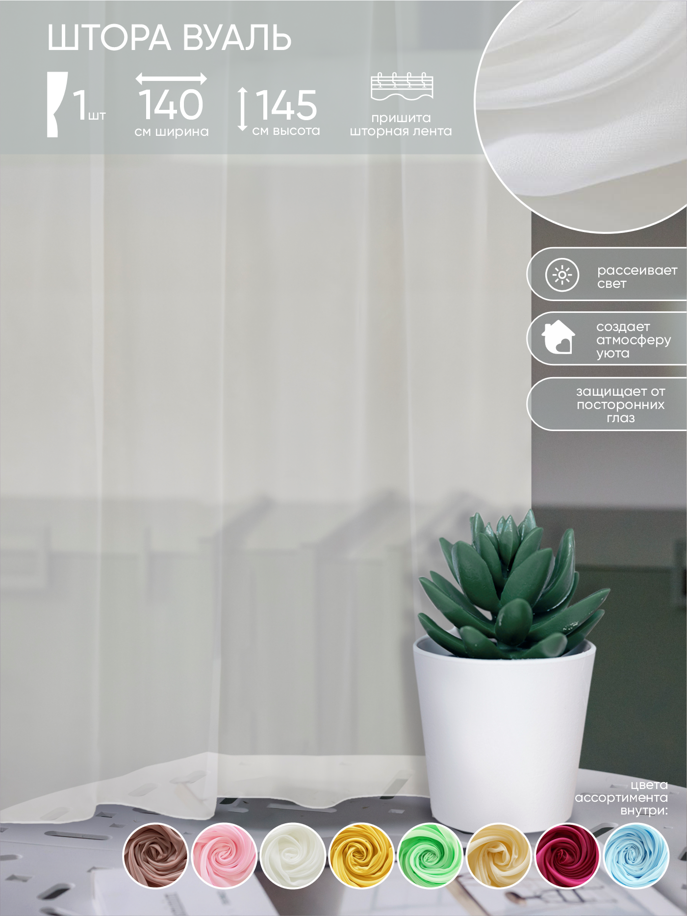 Штора вуаль однотонная Witerra, 145*150 см белый