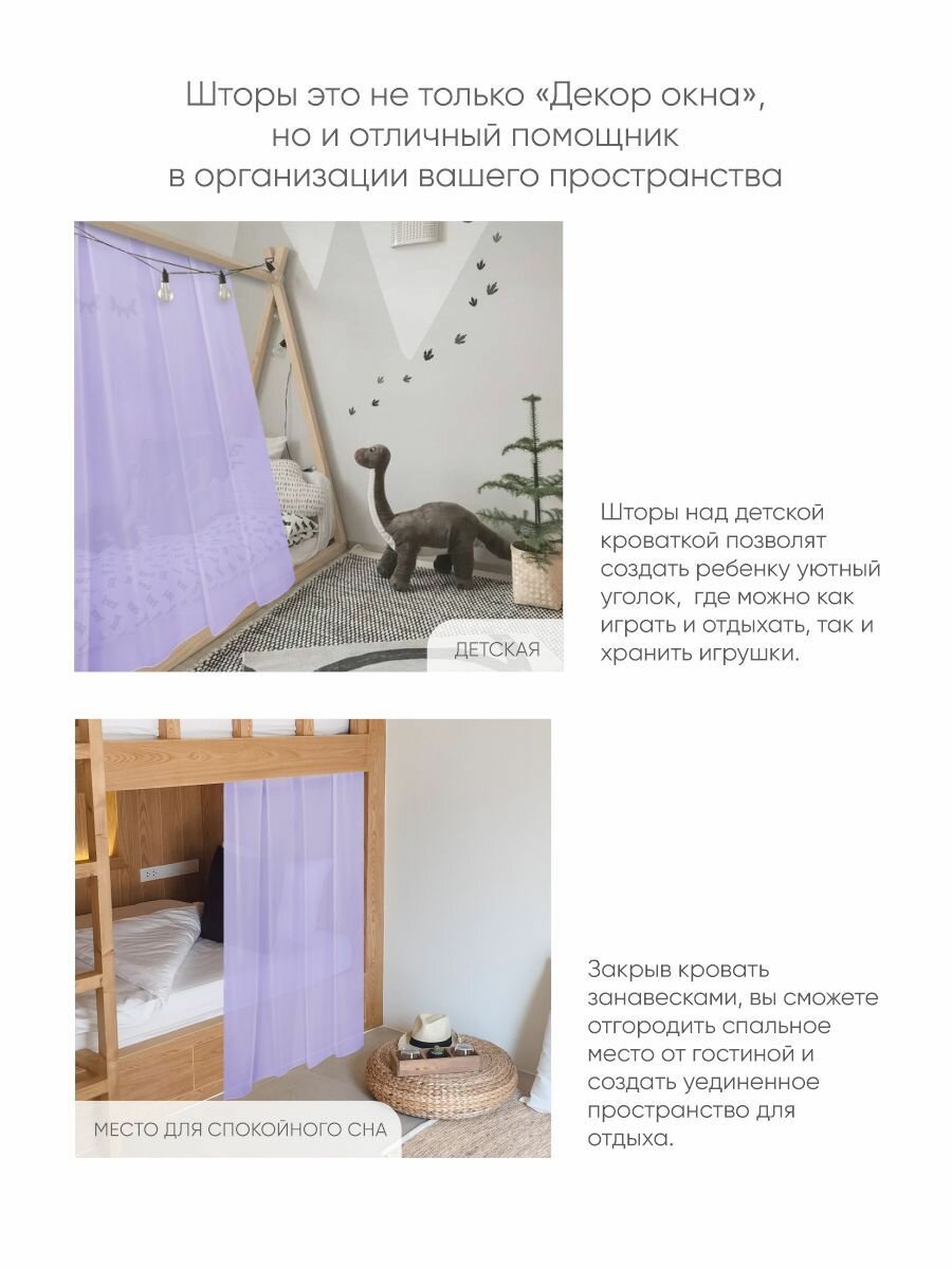 Штора-вуаль Witerra тюль на шторной ленте, для потолочного и круглого карнизов 140х180 см, сирень, 1 шт.