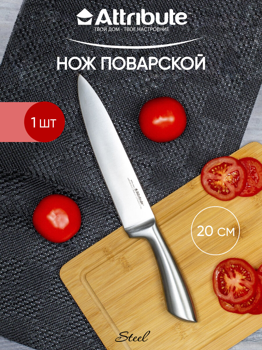Нож кухонный поварской ATTRIBUTE "STEEL" 20см, нержавеющая сталь