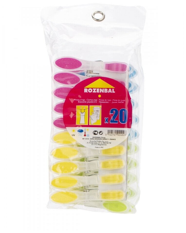Прищепки пластиковые 20шт разноцветные с латексным покрытием ROZENBAL