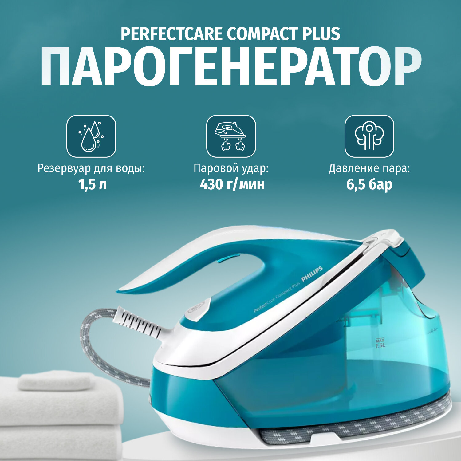 Парогенератор Philips PerfectCare Compact Plus 2400Вт голубой GC7920/20