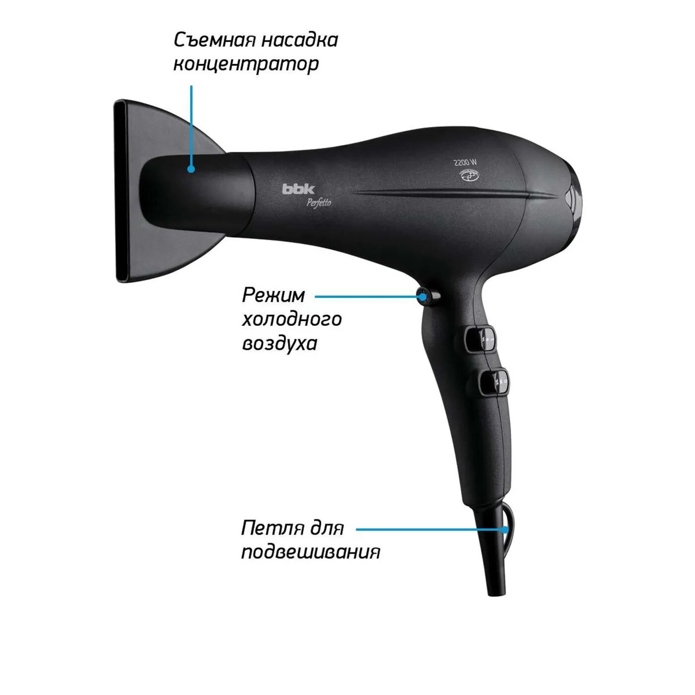 Фен для волос BBK BHD3227i черный, мощность 2200 Вт, 2 скорости, 3 уровня температуры