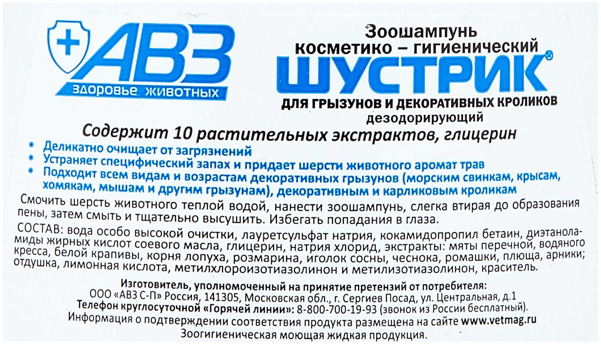 Шустрик (АВЗ) 100мл шампунь для грызунов дезодорирующий