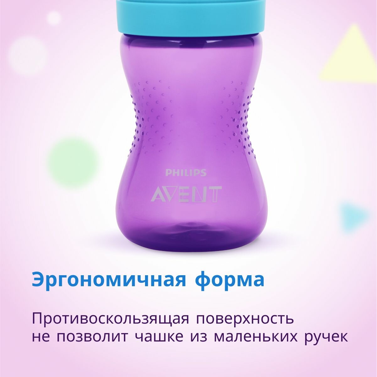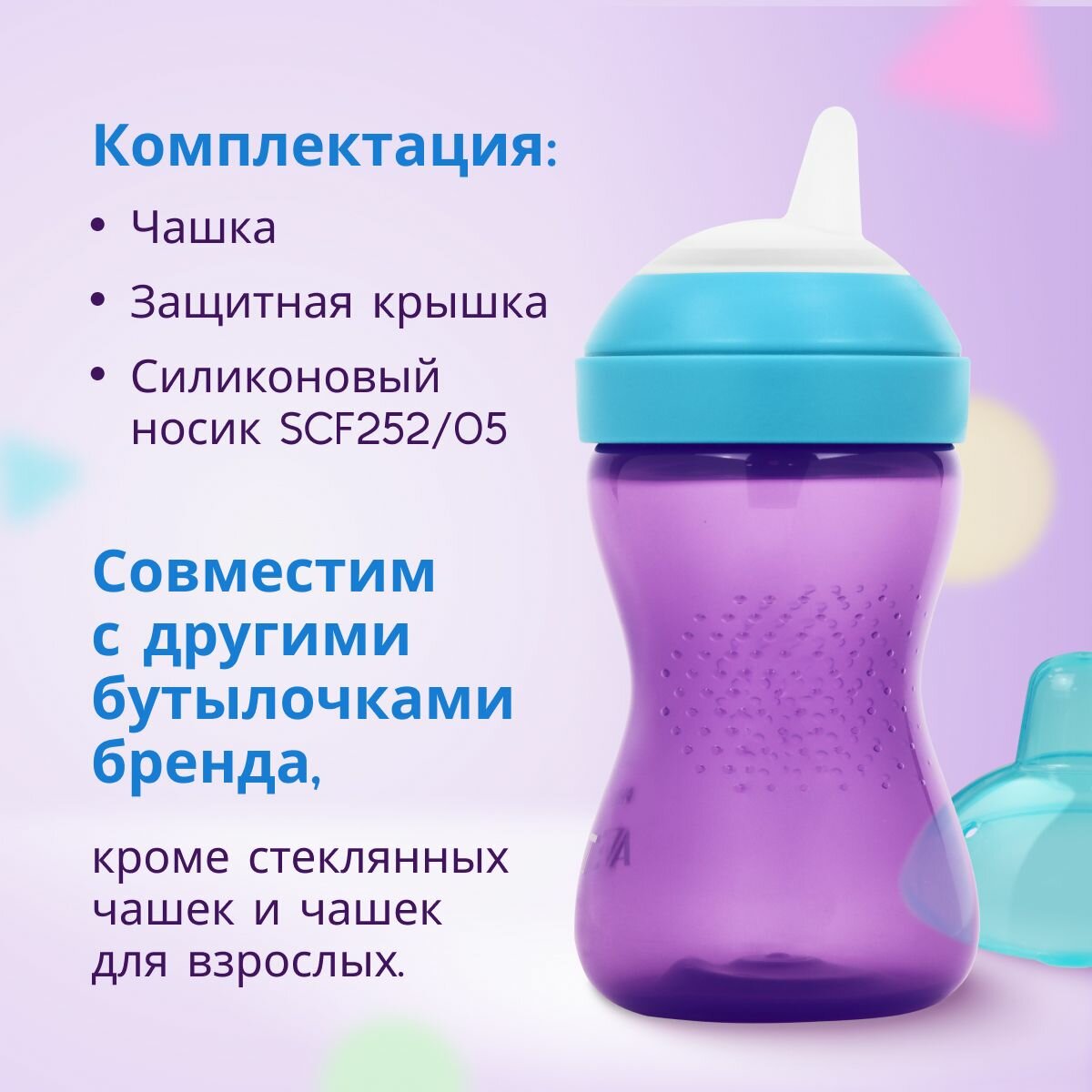 Чашка непроливайка с мягким носиком PHILIPS AVENT SCF802/02 300мл, с 9 месяцев, защитный колпачок, фиолетовый/синий
