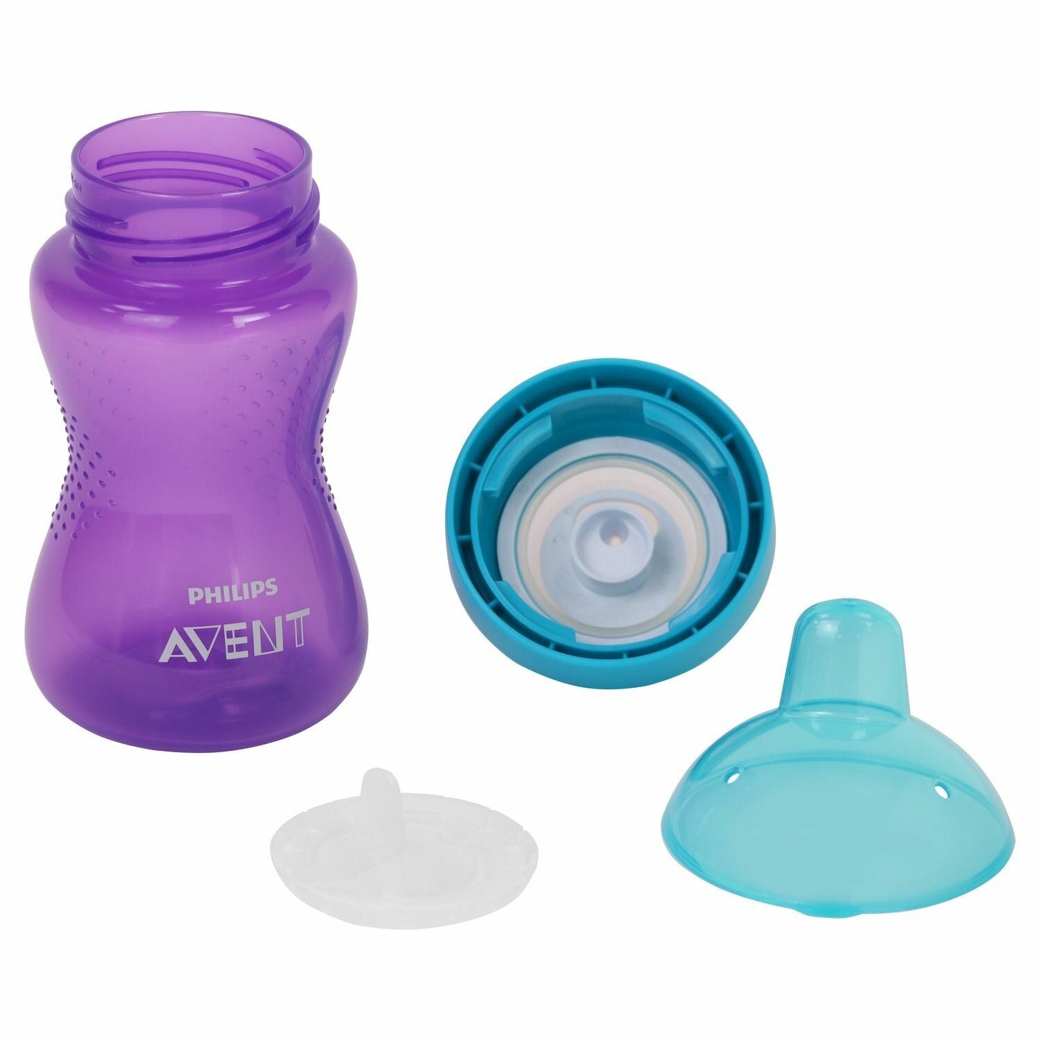 Купить Поильник непроливайка с мягким носиком Philips Avent SCF802/02 300 мл, для детей с 9 месяцев, с защитным колпачком, фиолетовый/синий