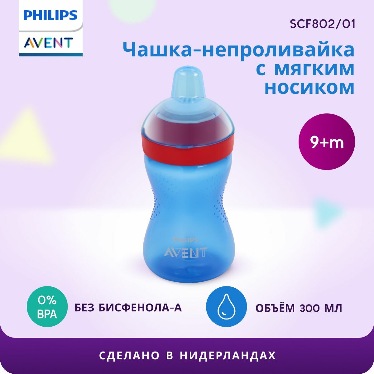 Philips Avent Чашка-непроливайка с мягким носиком SCF802, 300 мл, с 9 месяцев, синий