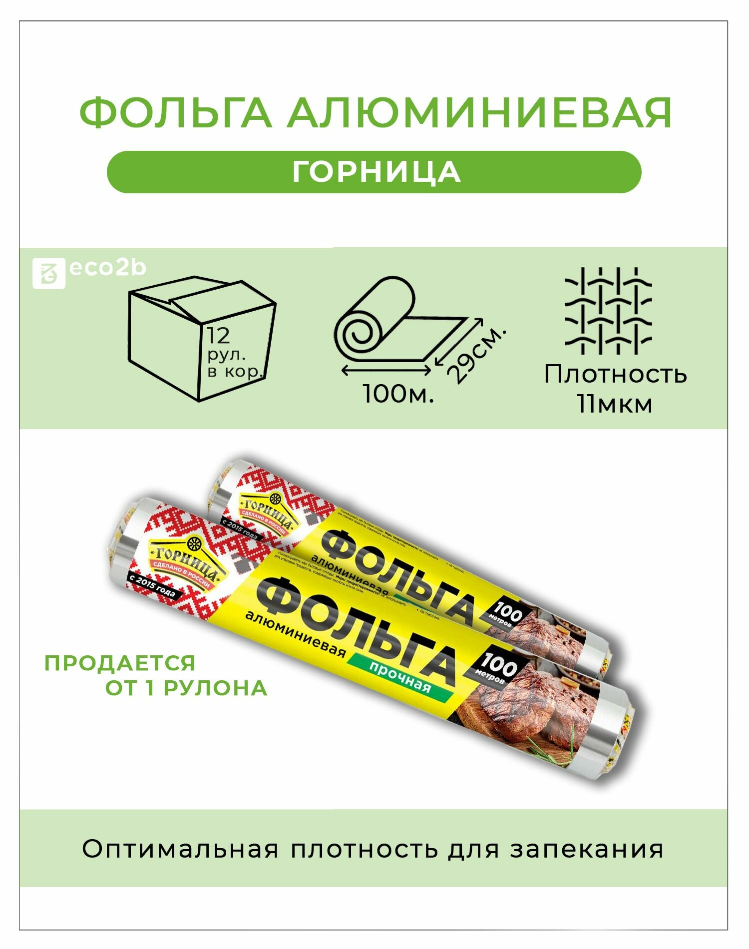 Прочная пищевая фольга Горница 29 см х 100 м, 11 мкм 209-034