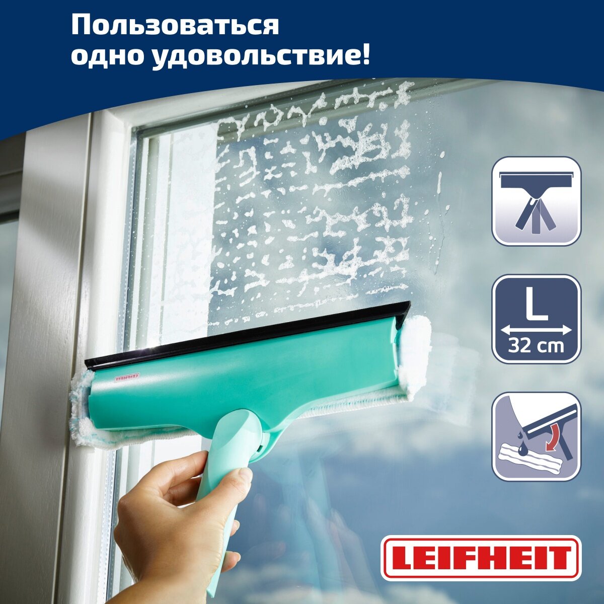 Щетка Leifheit W&F Cleaner L micro duo для мытья окон, 32см