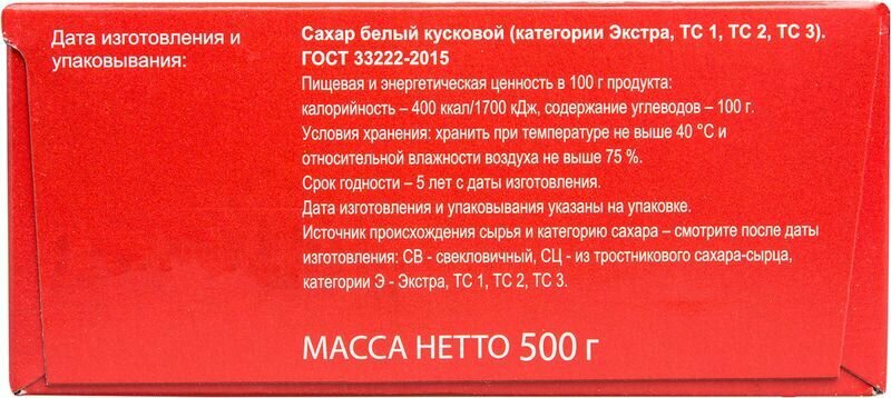 Сахар-рафинад Русский сахар, 0,5кг, картонная коробка