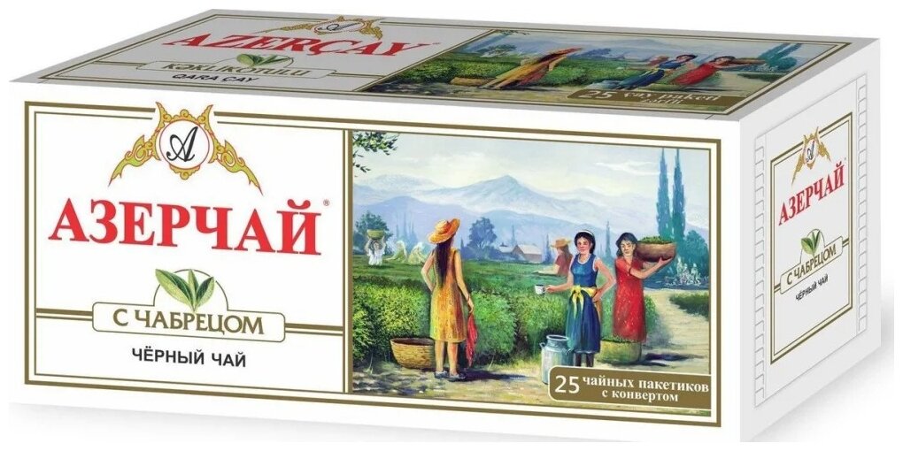 Азерчай Чай в пакетиках с Чабрецом, черный, 25 шт, 2 уп