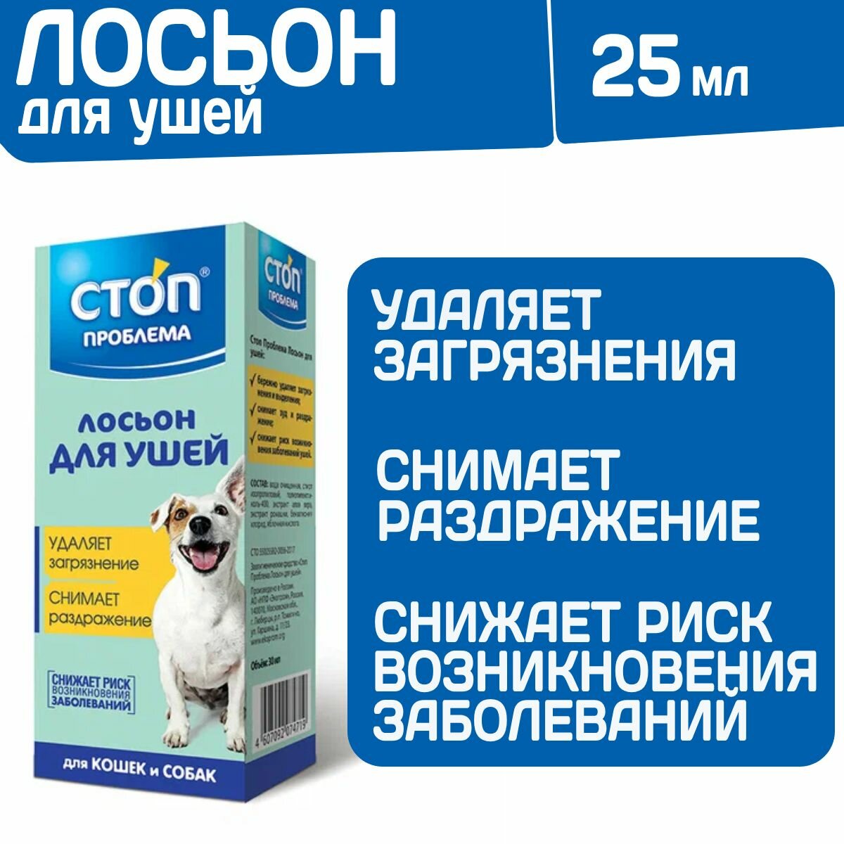 Лосьон для ушей, для кошек и собак, 25 мл, стоп проблема