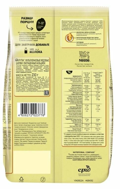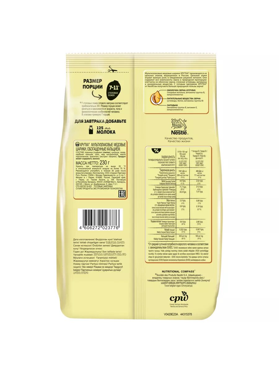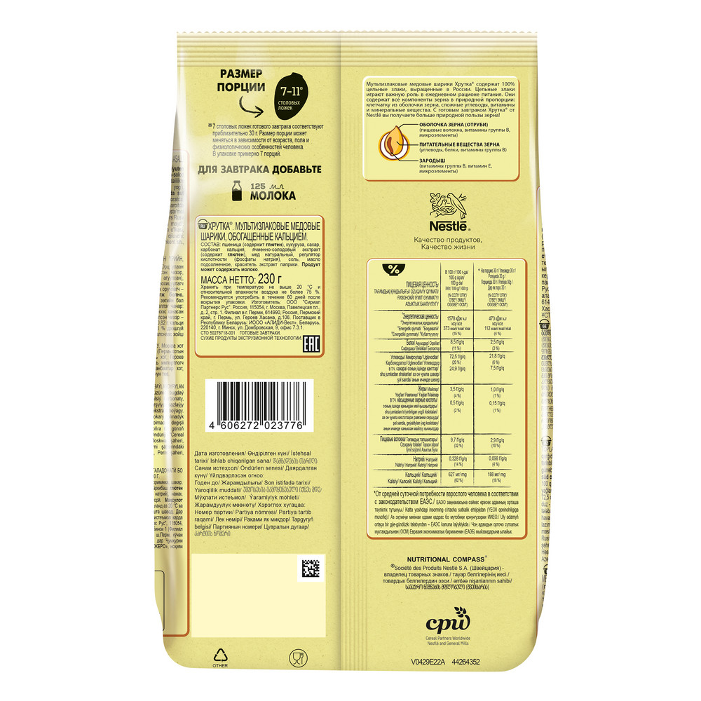 Хрутка мультизлаковые медовые шарики, обогащенные кальцием 230 г