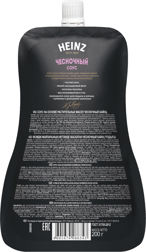 Купить Соус HEINZ Чесночный, на основе растительных масел, 200г