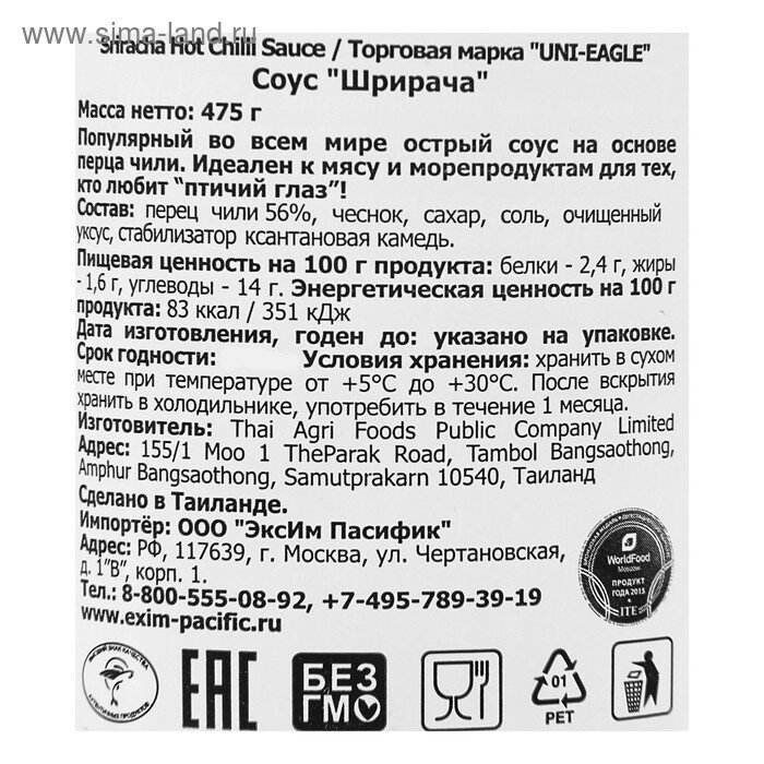 СохранитьСоус Шрирача "Uni-Eagle" 475 гр интересное: