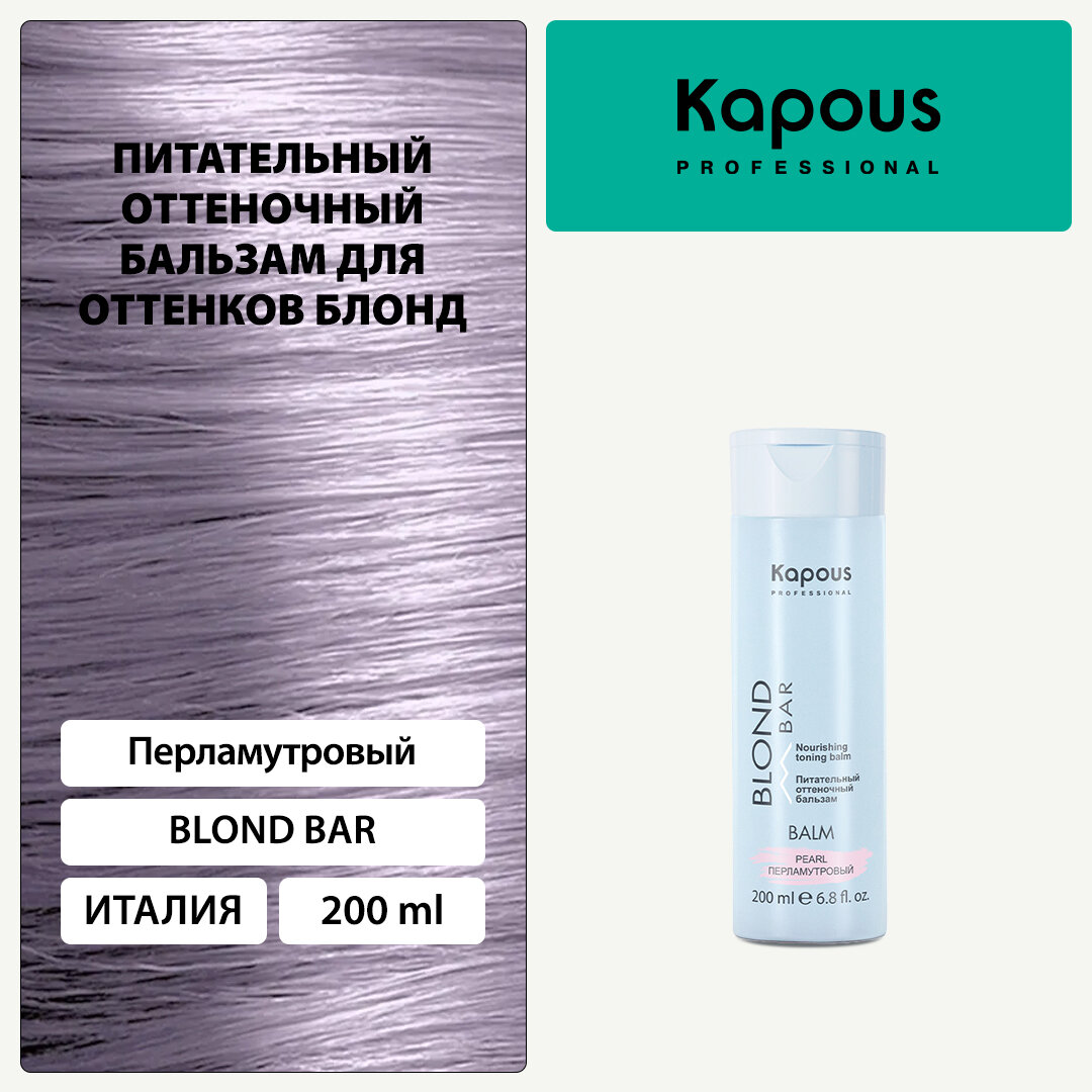 KAPOUS, BLOND BAR, Питательный оттеночный бальзам для оттенков блонд, перламутровый, 200 мл