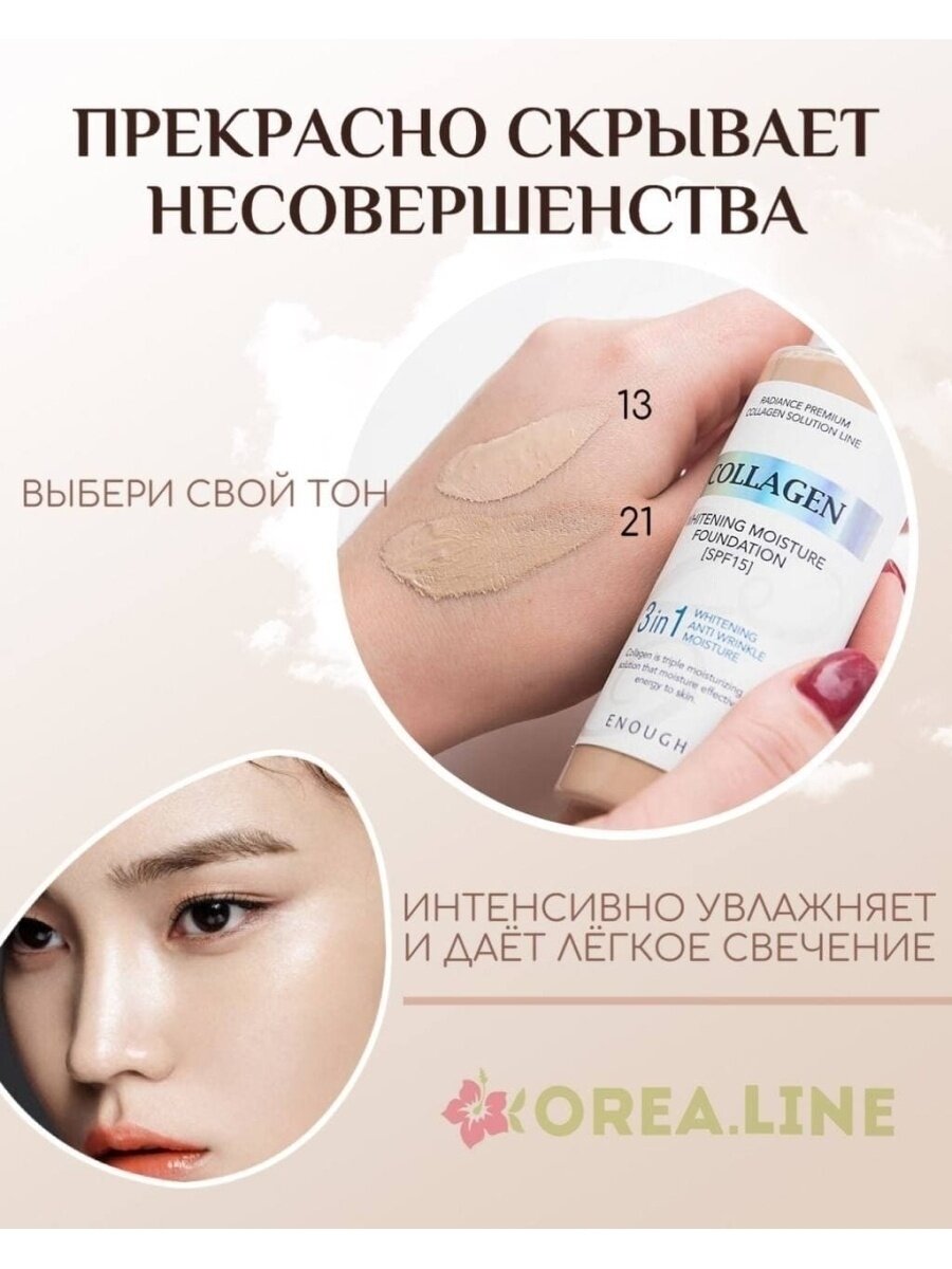 СохранитьOriginal Тональный крем 3 в 1 ENOUGH Collagen Whitening Moisture Foundation, SPF 15, тон 21, Корея интересное: