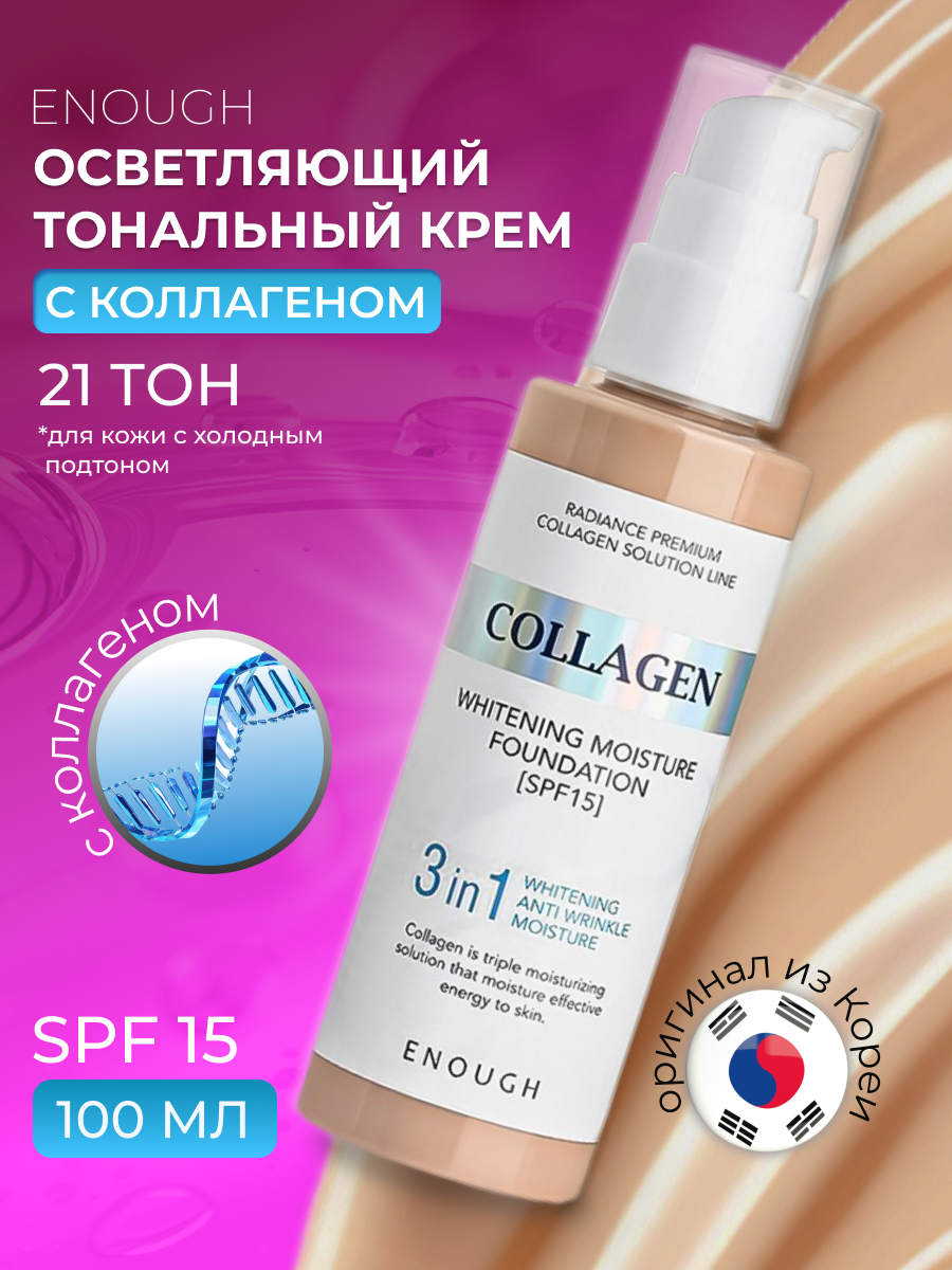 Купить Original Тональный крем 3 в 1 ENOUGH Collagen Whitening Moisture Foundation, SPF 15, тон 21, Корея