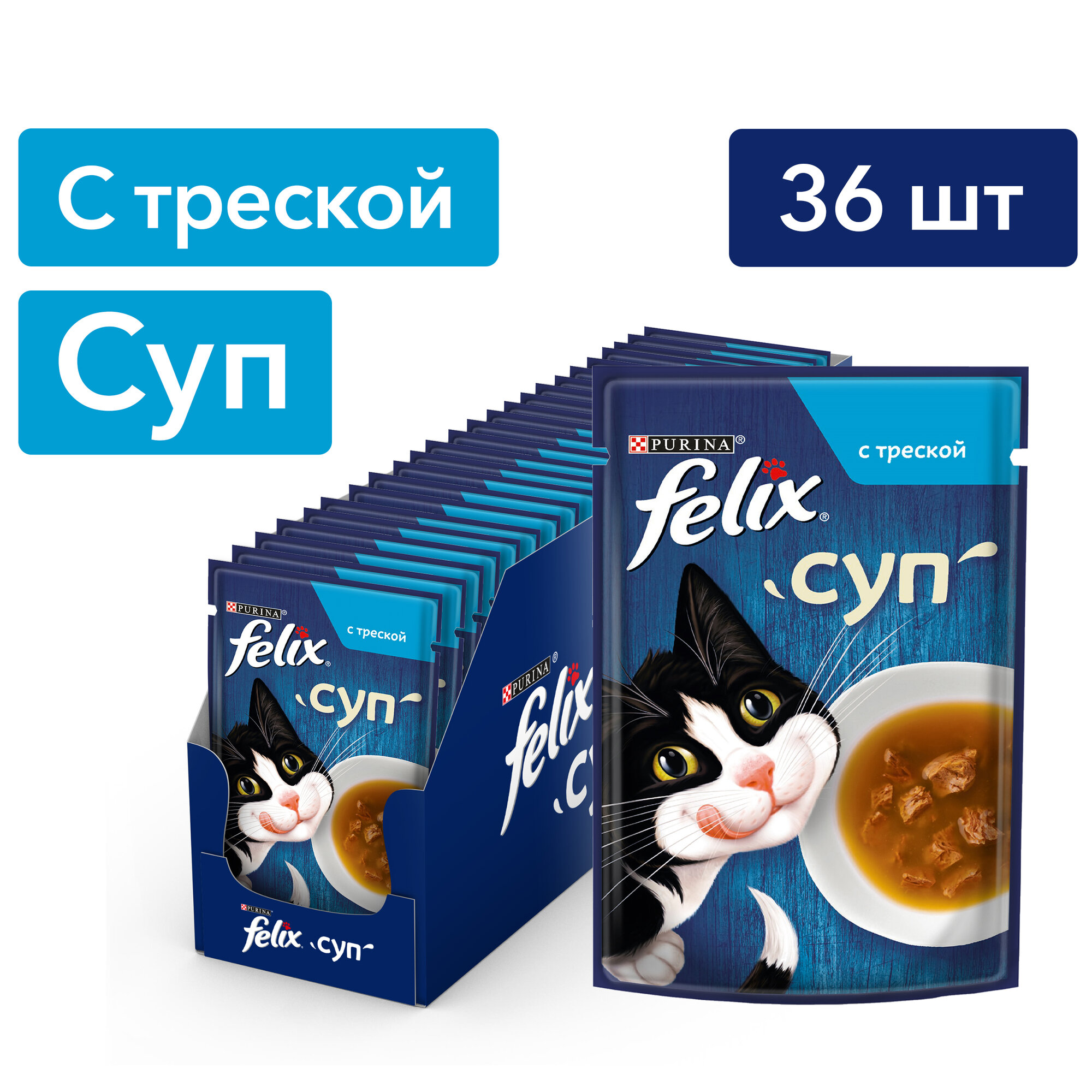Влажный корм Felix Суп для взрослых кошек, с треской пауч, 48г х 26 шт