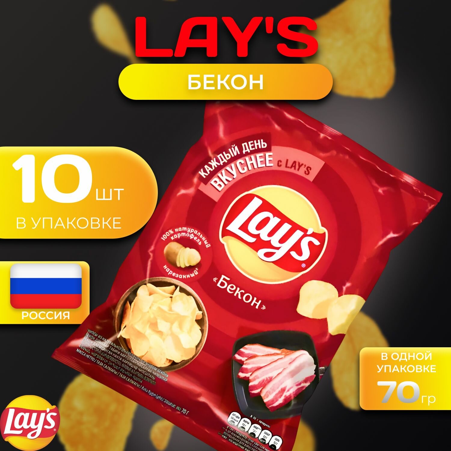 СохранитьКартофельные чипсы Lays "Бекон" 70 гр. 10 шт. Лейс интересное: