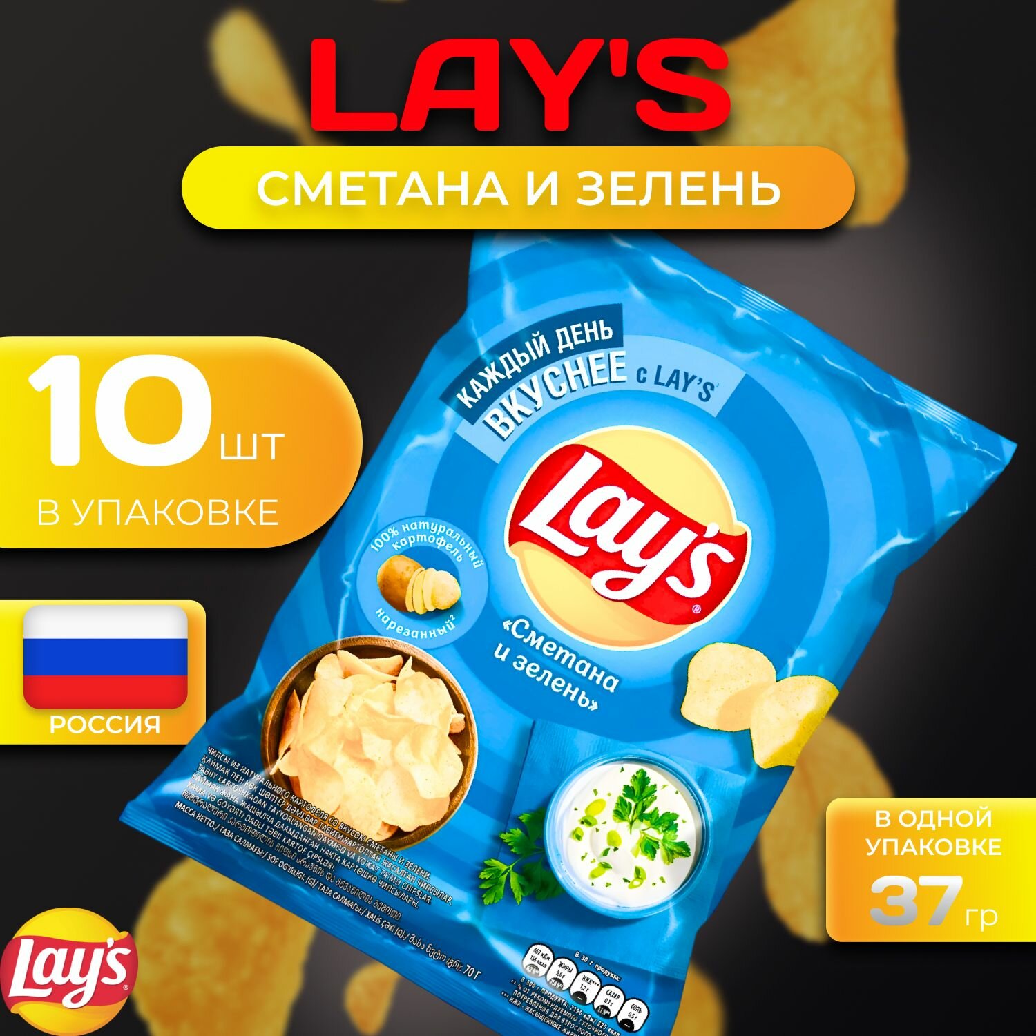 Купить Картофельные чипсы Lays "Сметана и зелень" 37 гр. 10 шт. Лейс