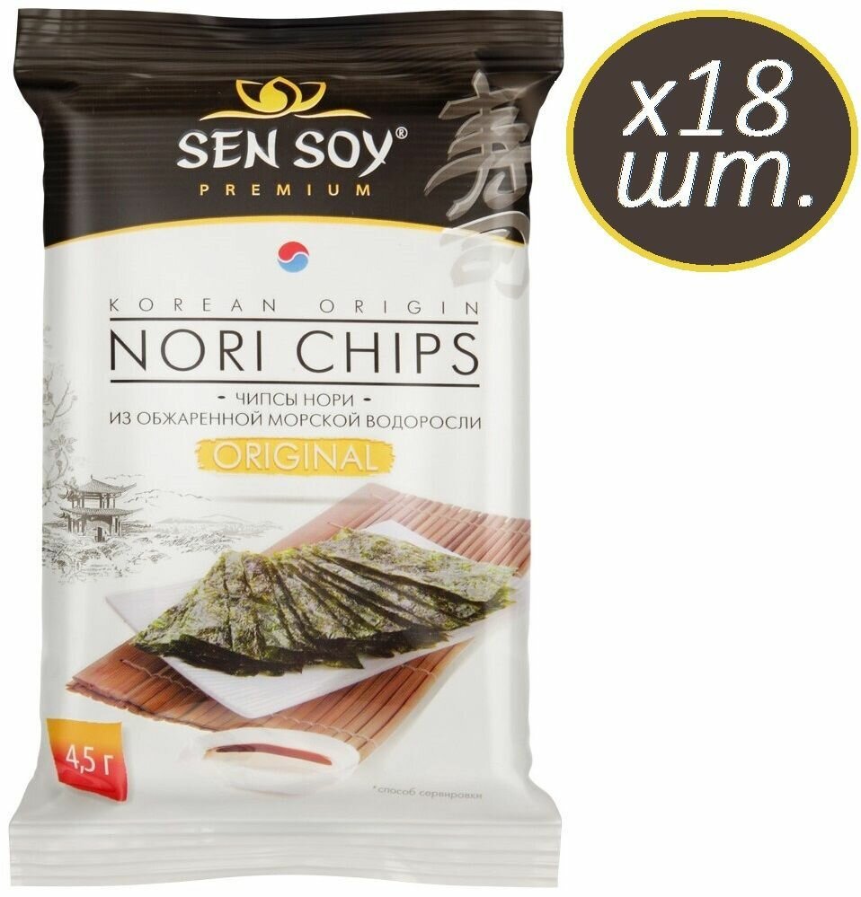 Купить Упаковка из 18 штук Чипсы Нори SEN SOY Original пак 4,5г Корея