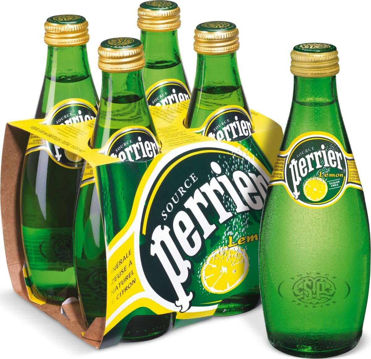 Вода минеральная Perrier (Перье) со вкусом лимона 4 шт. по 0.33 л, газированная, стекло