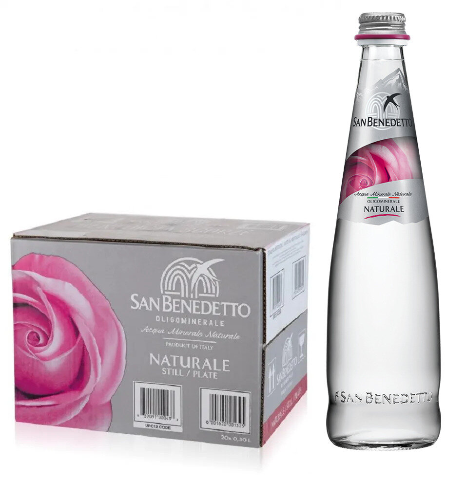Вода минеральная San Benedetto (Сан Бенедетто) 20шт. по 0,5л, негазированная, стекло