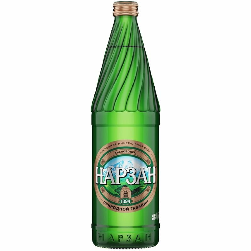 Минеральная лечебно-столовая вода Нарзан, натуральной газации, стекло, 0.5 л