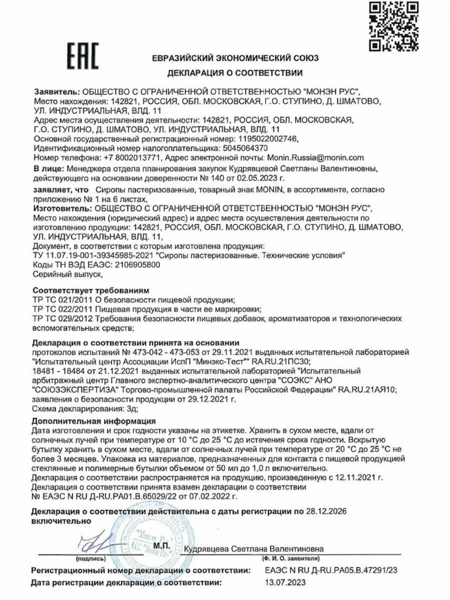Сироп MONIN, Шоколадное печенье, 1 литр, стекло