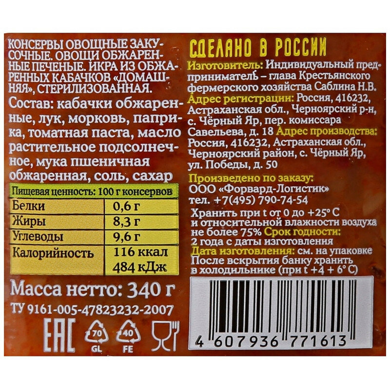 Икра из кабачков домашняя лукашинские, 340 г, 370 мл интересное:
