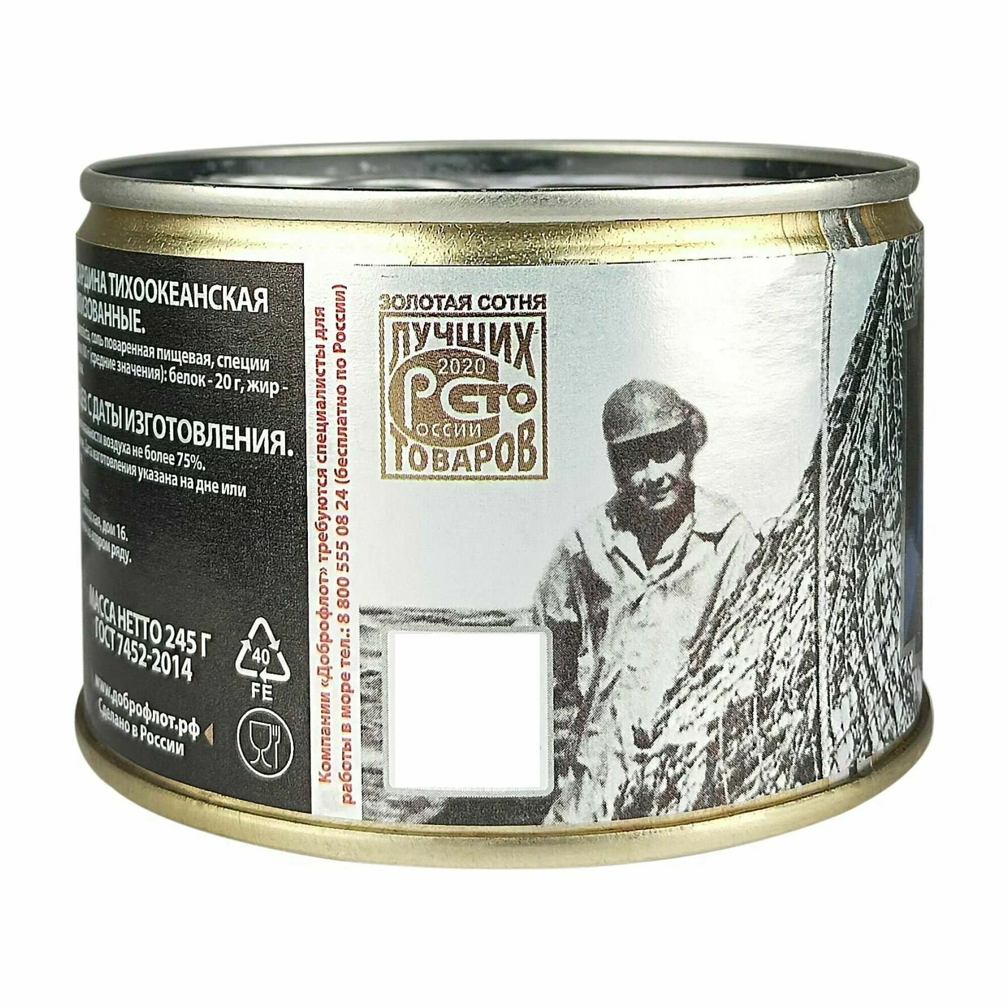 Консервы рыбные "Доброфлот" - Сардина тихоокеанская иваси натуральная, 245 г - 4 шт