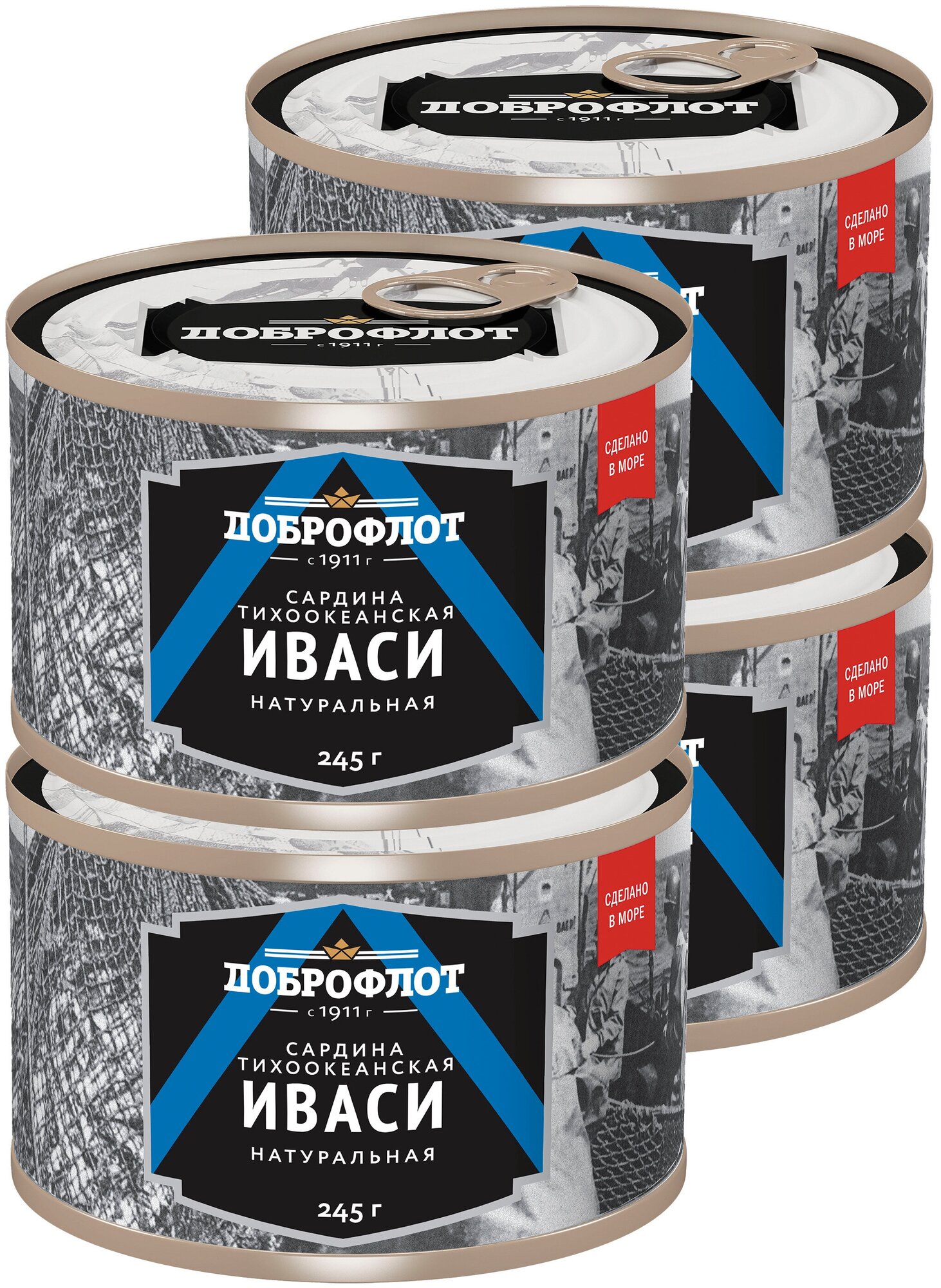 Консервы рыбные Доброфлот сардина тихоокеанская иваси натуральная, 245г, 4 шт