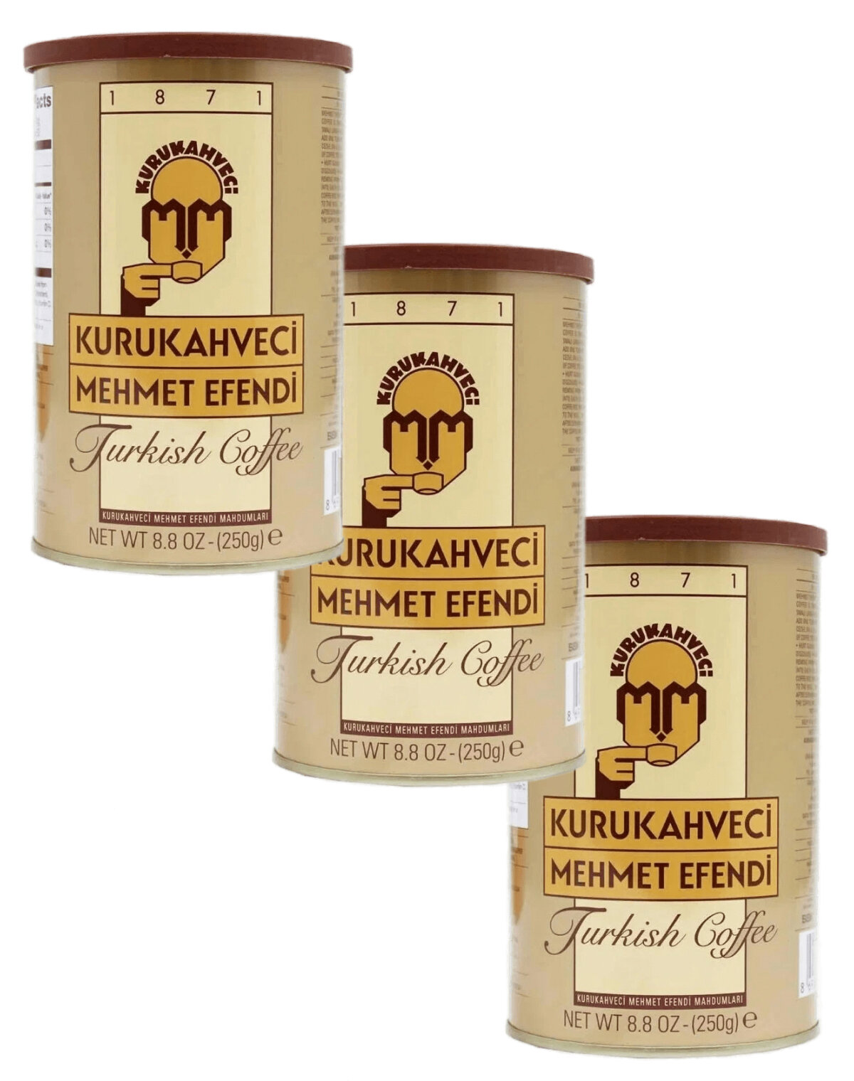 Турецкий кофе Kurukahveci Mehmet Efendi молотый, набор 3 банки по 250 гр.