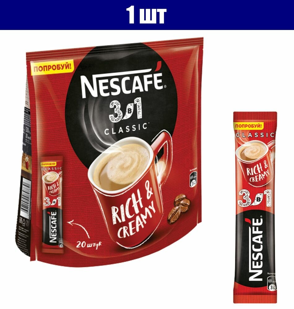 Кофе растворимый порционный NESCAFE 3 в 1 Классик, комплект 20 пакетиков по 14,5 г 1 шт.
