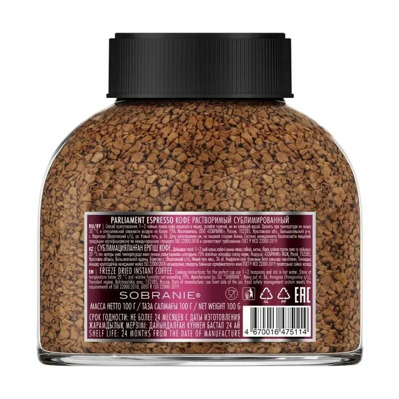 Кофе растворимый PARLIAMENT Espresso 100гр х 1шт, сублимированный