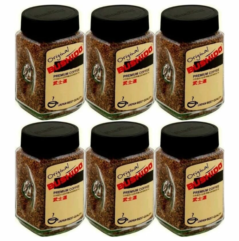 Упаковка 6 штук Кофе растворимый Bushido Original 100г с/б крист Швейцария