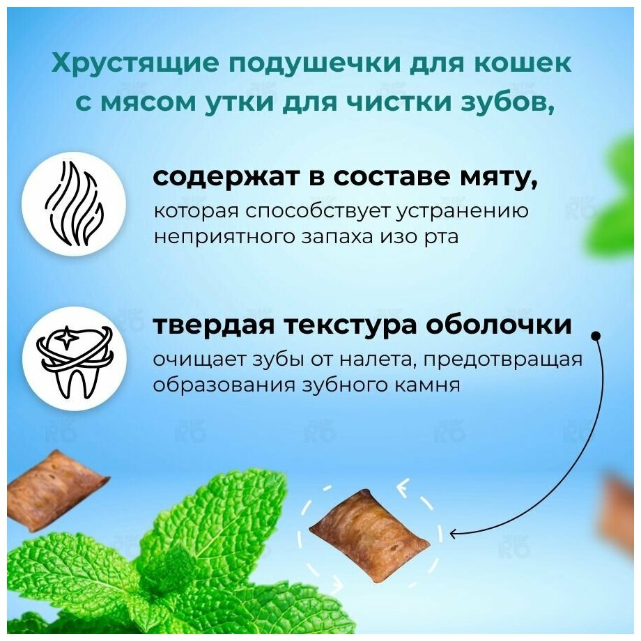 Лакомство TiTBiT Хрустящие подушечки с уткой и мятой для чистки зубов кошек (60 г)