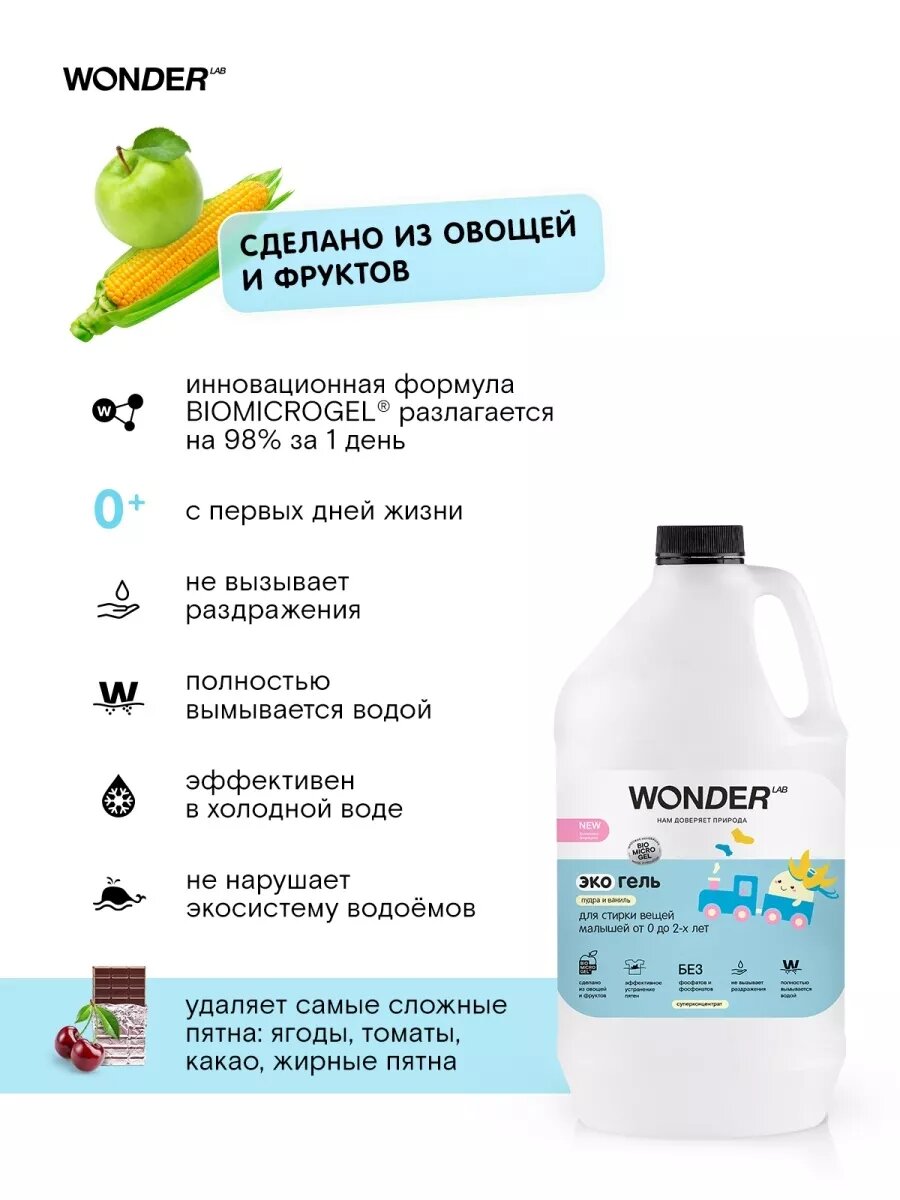 WONDER LAB, Гель для стирки детских вещей от 0 до 2 лет, гипоаллергенный, с ароматом пудры и ванили, 3.78 литра интересное: