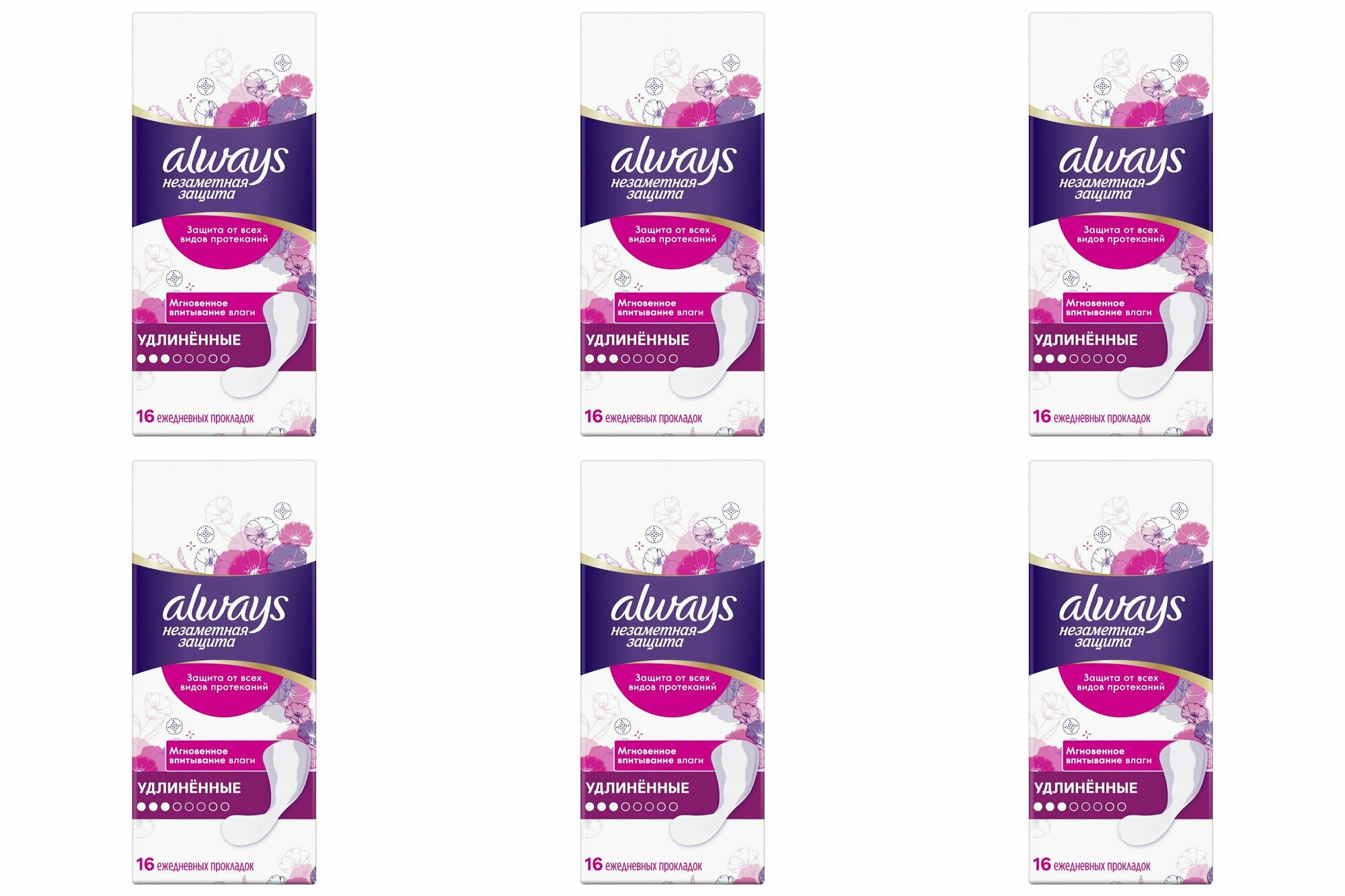 Always Ежедневные гигиенические прокладки Незаметная защита, удлиненные, ароматизированные, 16шт/уп, 6 уп /